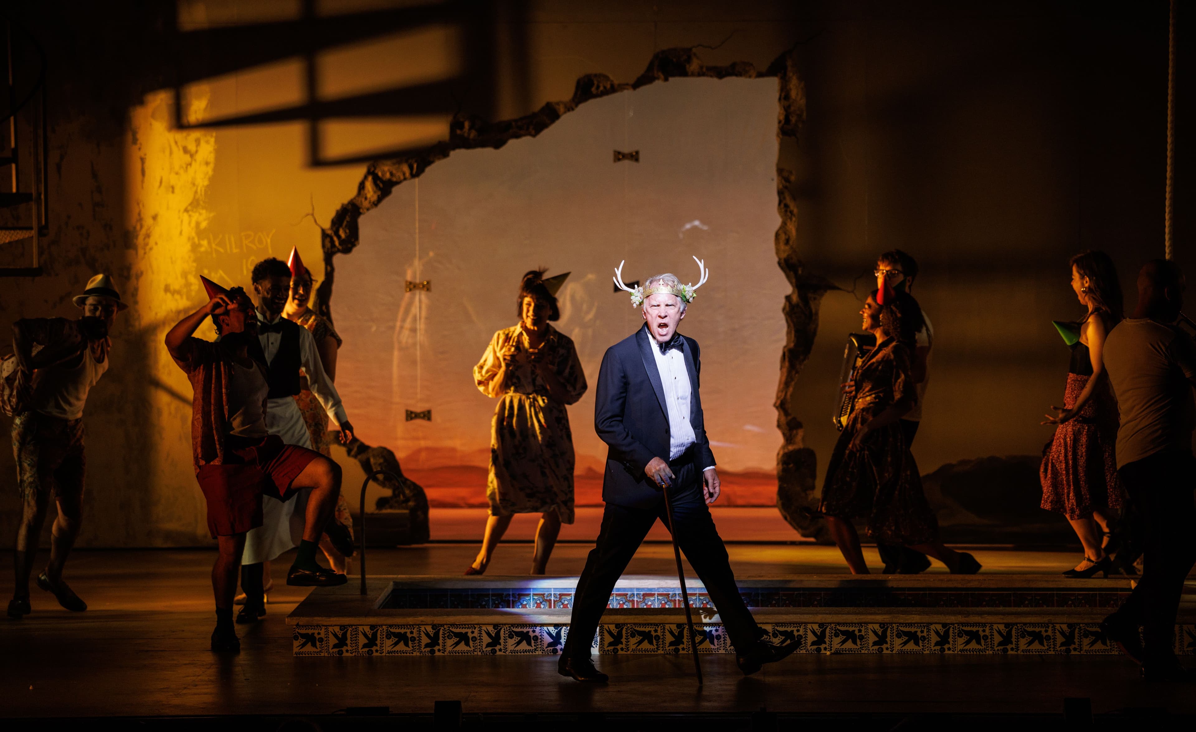 The Camino Real is a dead end, a police state in an imagined Latin-Mediterranean-American country, and an inescapable condition. Characters from history and literature such as Don Quixote, Casanova, and Camille inhabit this phantasmagoric plaza where corruption and alienation have nearly destroyed the human spirit. Enter Kilroy, a prize-winning boxer and all-American fella with “a heart as big as the head of a baby.” In an ambitious first significant revival since the ‘99 Williamstown production, Camino Real unfolds over a series of sixteen dizzying “blocks” and is a clarion call to the Romantics of the world—drowning in an ocean of cynicism, suspicion, and censorship—to use their indefatigable spirit as a life raft.
